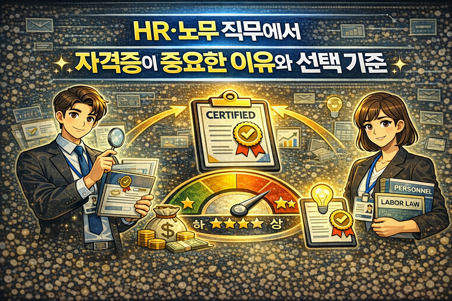 HR 직무 유형별로 자격증 활용도가 다른 이유서론: HR도 하나의 직무가 아니다HR 직무는 흔히 하나의 영역으로 묶여 이야기되지만,실제 현장에서는 업무 성격과 요구 역량이 서로 다른 여러 유형으로 나뉩니다.이 때문에어떤 HR 직무에서는 자격증이 비교적 중요한 참고 자료가 되기도 하고,다른 HR 직무에서는 거의 의미를 가지지 않는 경우도 발생합니다.이 글에서는 HR 직무를 유형별로 나누어왜 자격증의 활용도가 다르게 나타나는지,그리고 어떤 HR 직무에서 자격증이 의미를 가질 수 있는지를현실적인 기준으로 정리합니다.HR 직무 전반에서 자격증이 갖는 기본적인 역할HR 직무에서 자격증은 공통적으로 다음과 같은 역할을 합니다.HR 제도와 용어에 대한 기본 이해 증명인사·노무 영역에 대한 학습 이력 표시서류 단계에서..